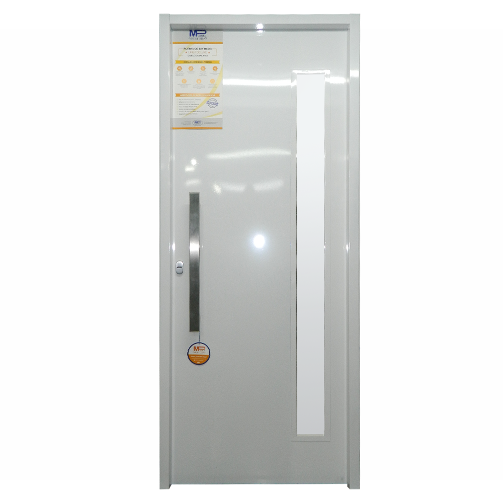 •Hoja: doble Chapa Nº18 con 3 bisgras munición, cerradura de seguridad doble perno, bocallave cromado, manijón de acero de 50cm, rellena con lana de vidrio de alta densidad de 50mm.
