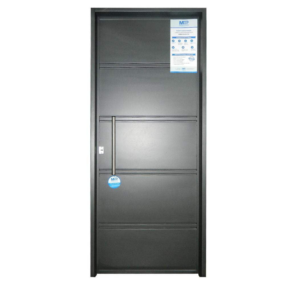 •Hoja: doble Chapa Nº18 con 3 bisgras munición, cerradura de seguridad doble perno, bocallave cromado, manijón de acero de 50cm, rellena con lana de vidrio de alta densidad de 50mm.